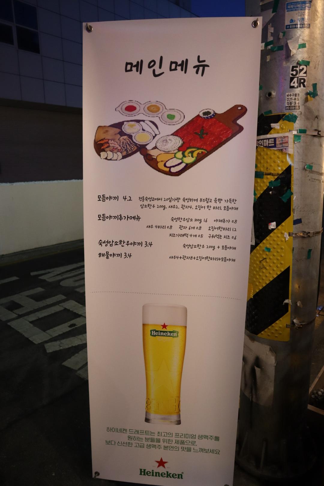 합정역 술집 아니키에 가서 맛있는 백합조개술찜, 모듬야끼, 한맥 2병을 주문!
