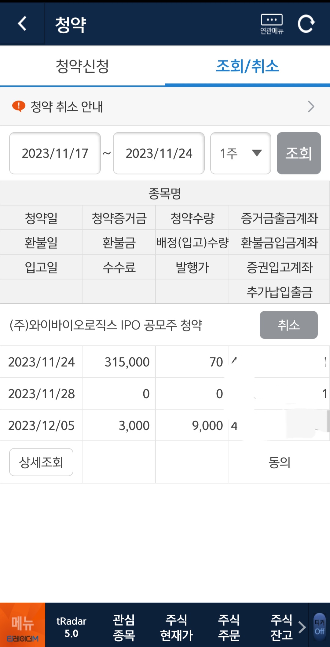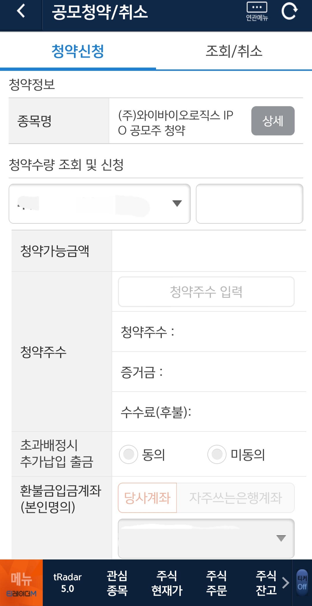 이번에는 (주)와이바이오로직스 공모주 청약을 했어요.