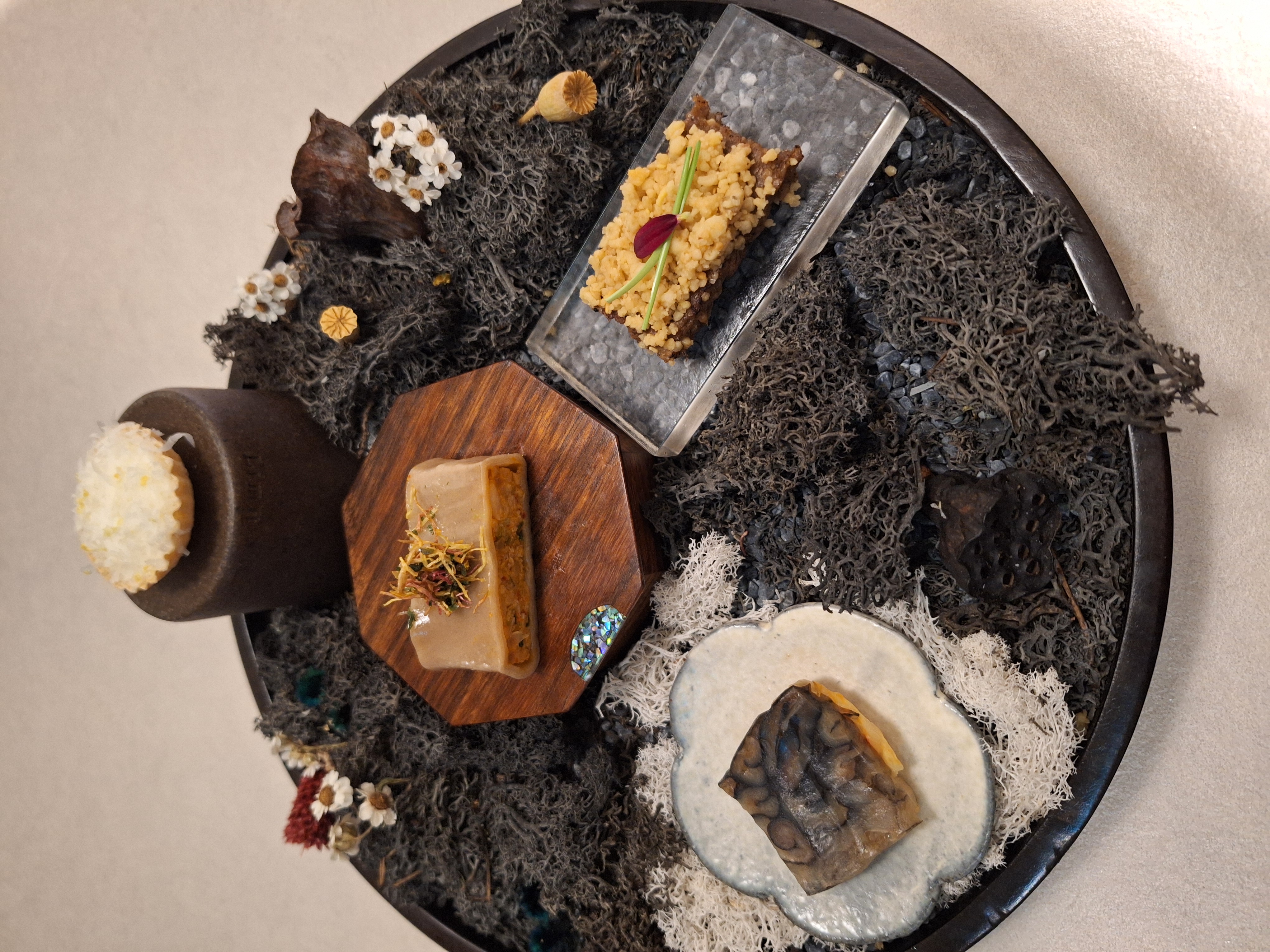 홍어삼합, 대구살 타르트, 메밀전병, 장산적입니다.
